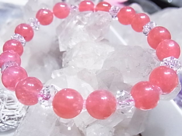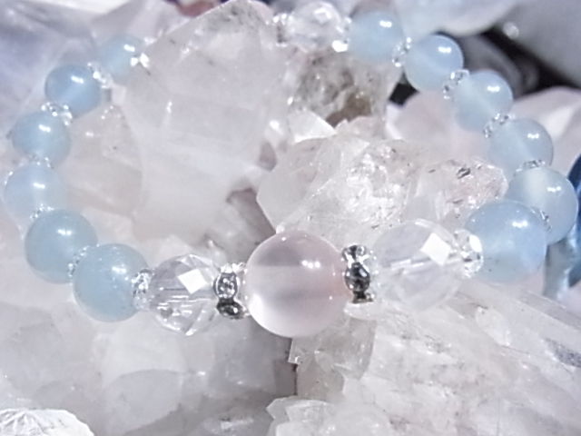 自作のローズクォーツブレスです